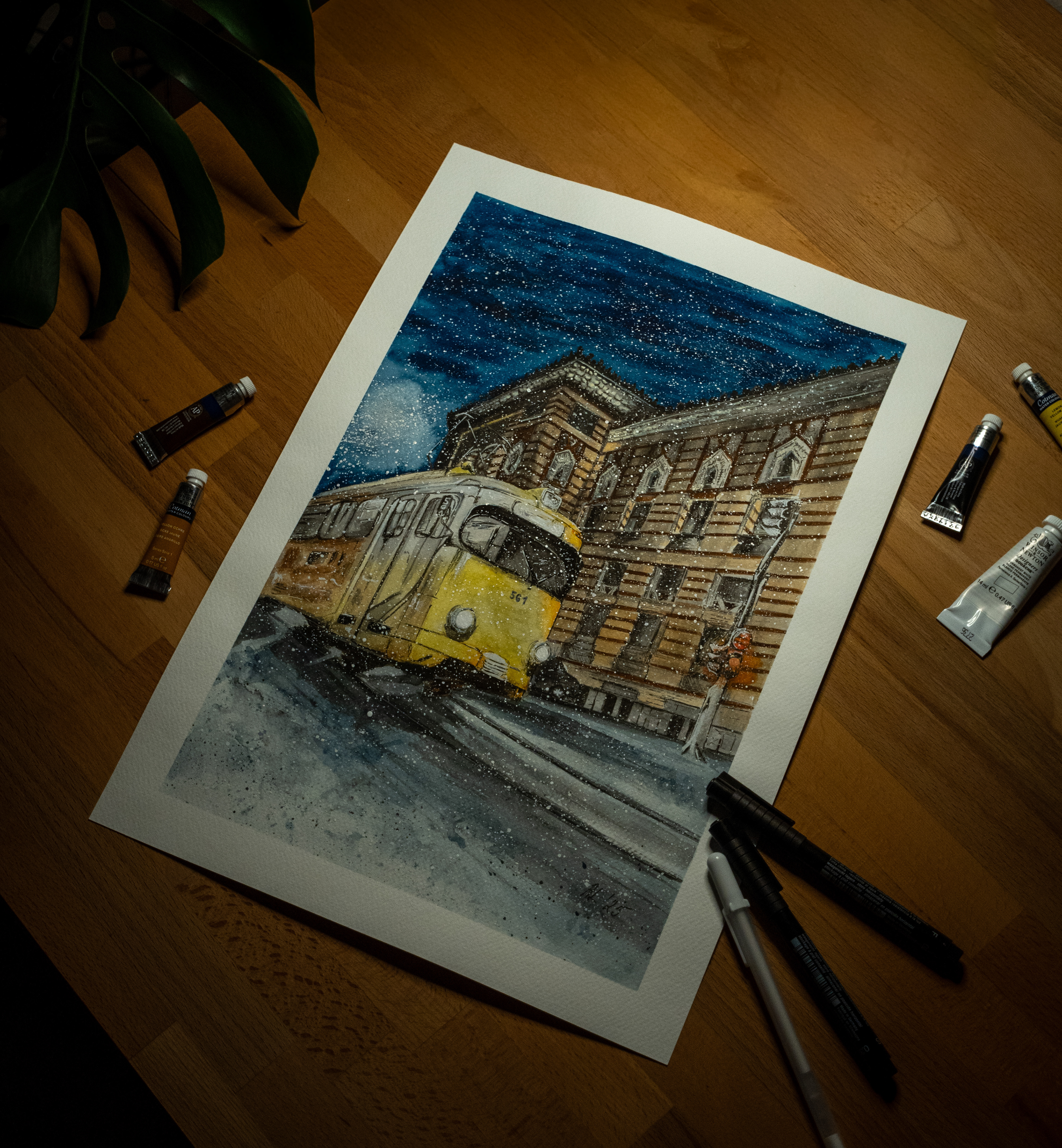 A painting of Vijećnica in Sarajevo captures the iconic beauty of this historic landmark, known for its stunning architecture. Whether depicted in daylight or as a night scene, the painting symbolises Sarajevo’s culture and history, making it a striking and meaningful piece.